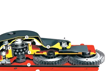 - Long-term reliability: large-diameter gearwheels in high-tensile forged steel with reinforced teeth.