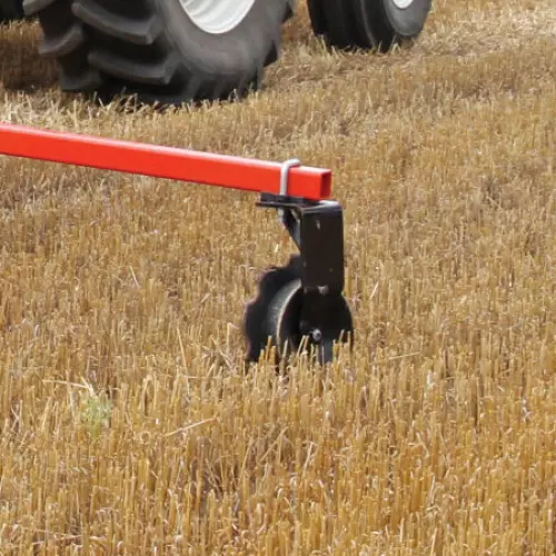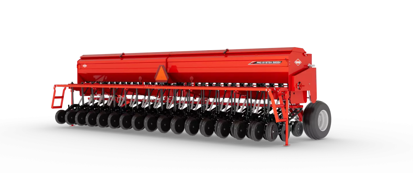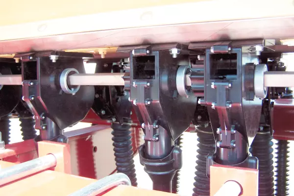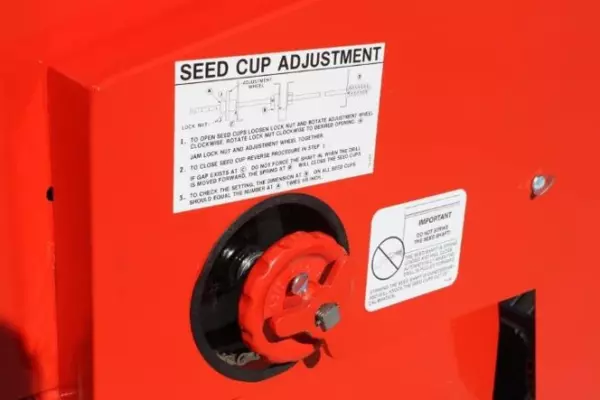 Individual row downforce adjustment maintains uniform seeding depth across the entire drill, even in variable soil conditions. The integral leading gauge wheel simulates a walking tandem. It follows uneven terrain while placing seeds at a consistent depth, which is especially important for small, seeded crops, like alfalfa.