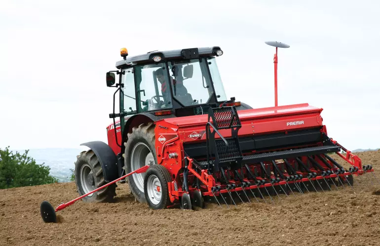 The volumetric seed metering by fluted rollers, with built-in small seed rollers, is suitable for all seed sizes and shapes. The helical grooves dose applications rates from 1 – 400 lbs/acre. This distribution system is accurate and reliable throughout the whole operation. It provides regular seeding rates and distribution in the row even on slopes or uneven ground and is unaffected by vibrations. The Premia metering system is controlled by the seed drill’s two wheels via a 6-cam selector. This ensures reliable control and a regular flow through uniform rotation for small seeds with according low application.