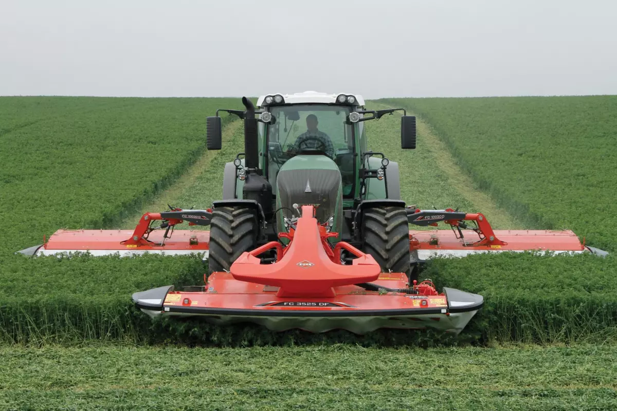 - Gear-to-Gear Power Transmission: Gear-to-gear power transmission, a staple of all KUHN disc mowers, allows for maximum power to be transferred through all gears in the cutterbar. Unlike other gear cutterbars, equal sized gears throughout reduces torque on the gear teeth and leads to unsurpassed reliability and longevity.
