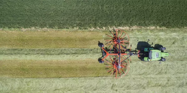 KUHN twin-rotor rakes with center windrow delivery provide fast, efficient operation while maintaining high-quality raking to maximize the nutrient value of your forage. The GA 6501 offers working widths of 18’6” to 21’, while the GA 7501+ offers 22’5” to 24’3”.