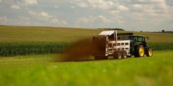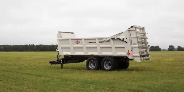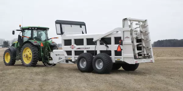 The KUHN Knight HP 140 ProPush® hydraulic-push manure spreader, with a heaped capacity of 365 ft³, is designed to haul and spread solid materials from dairies and feedlots, including gutter manure, yard scrapings, bedding pack and feedlot manure.