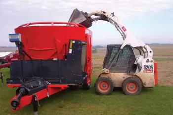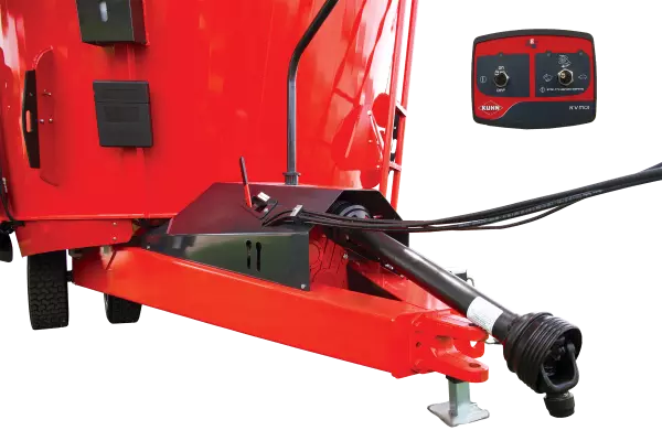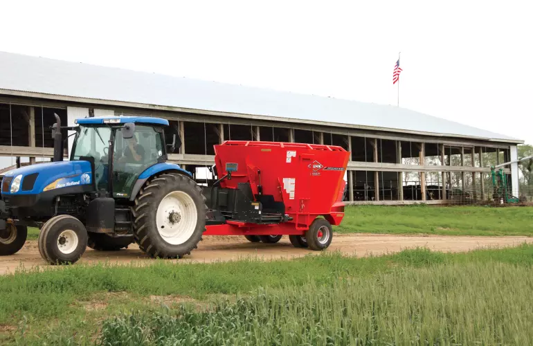 A shiftable, 2-speed gearbox option allows for reduced input horsepower and auger speed for easier starting and mixing, even with smaller tractors. The gearbox can be shifted manually on the machine, or with an in-cab electric shift option for operator convenience.