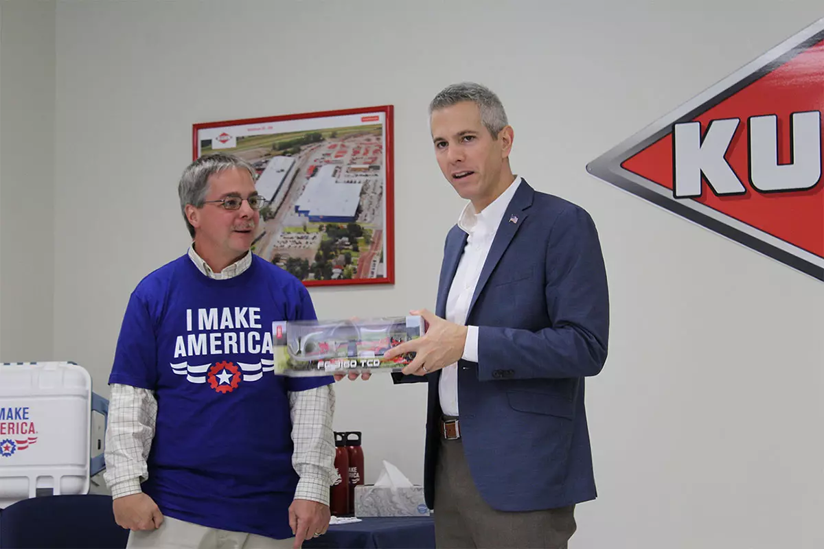 Vernon, N.Y. – The Association of Equipment Manufacturers and KUHN North America hosted Congressman Anthony Brindisi (NY-22) on November 4. I Make America, AEM’s national grassroots campaign, works throughout the year to host elected officials and other policymakers at member companies’ facilities across the United States.